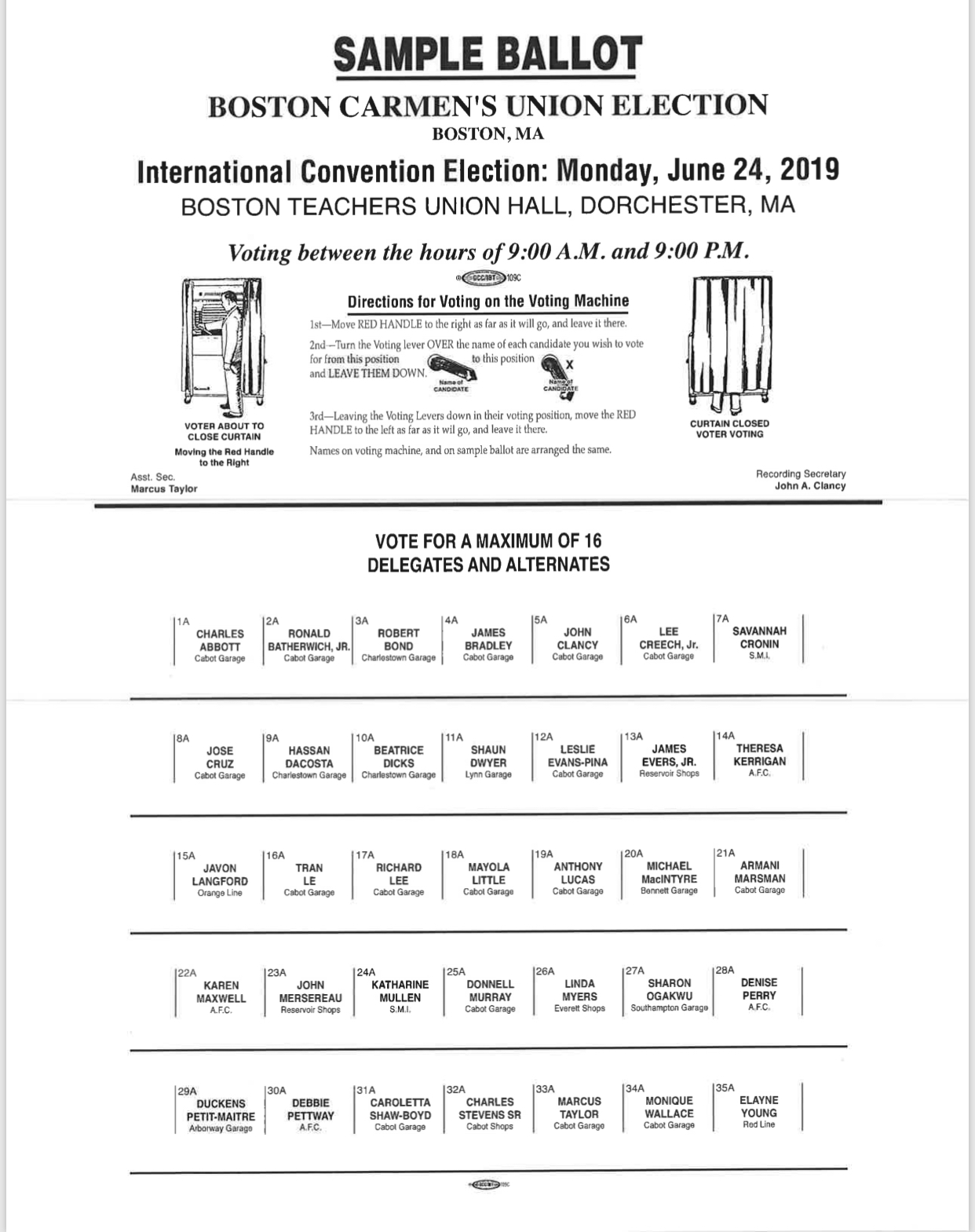 Dear Brothers and Sisters, Election Day for the 2019 ATU Convention is Monday, June 24th from 9am to 9pm at the BTU Hall. It’s imperative you exercise your right to vote. Thirty-five candidates have stepped forward to represent our local at the convention — which is not an easy thing to do. You have a total of up to…
