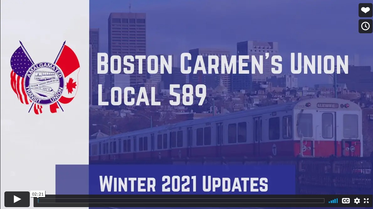 As we move forward into the new year, I am pleased to share a video with updates on negotiations, the pandemic, fighting the MBTA reductions, and most importantly, a message of appreciation from the Executive Board. Over the past couple of months, our union actively fought against the MBTA service cuts, began contract negotiations, and…