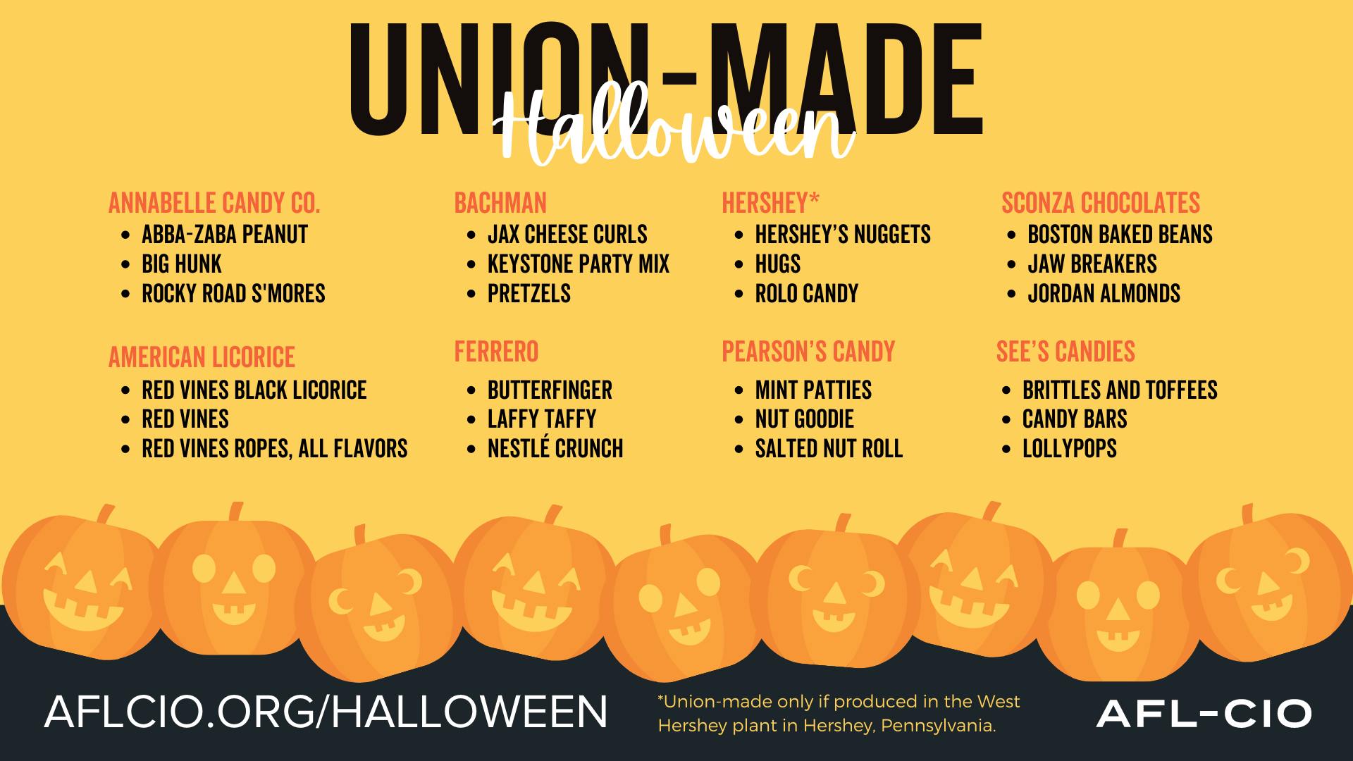 When shopping for Halloween candy, let your dollars support fair wages and respect for workers’ rights. Choose treats that back good jobs and uphold the value of American labor. #UnionStrong #Solidarity #Halloween #MadeInAmerica