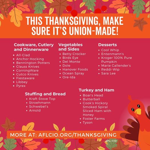 As you prepare your holiday feast, make sure to choose American-made, union-produced goods. Together, we can celebrate the season while supporting those who keep our communities strong. #UnionProud #UnionWay #Thanksgiving2024