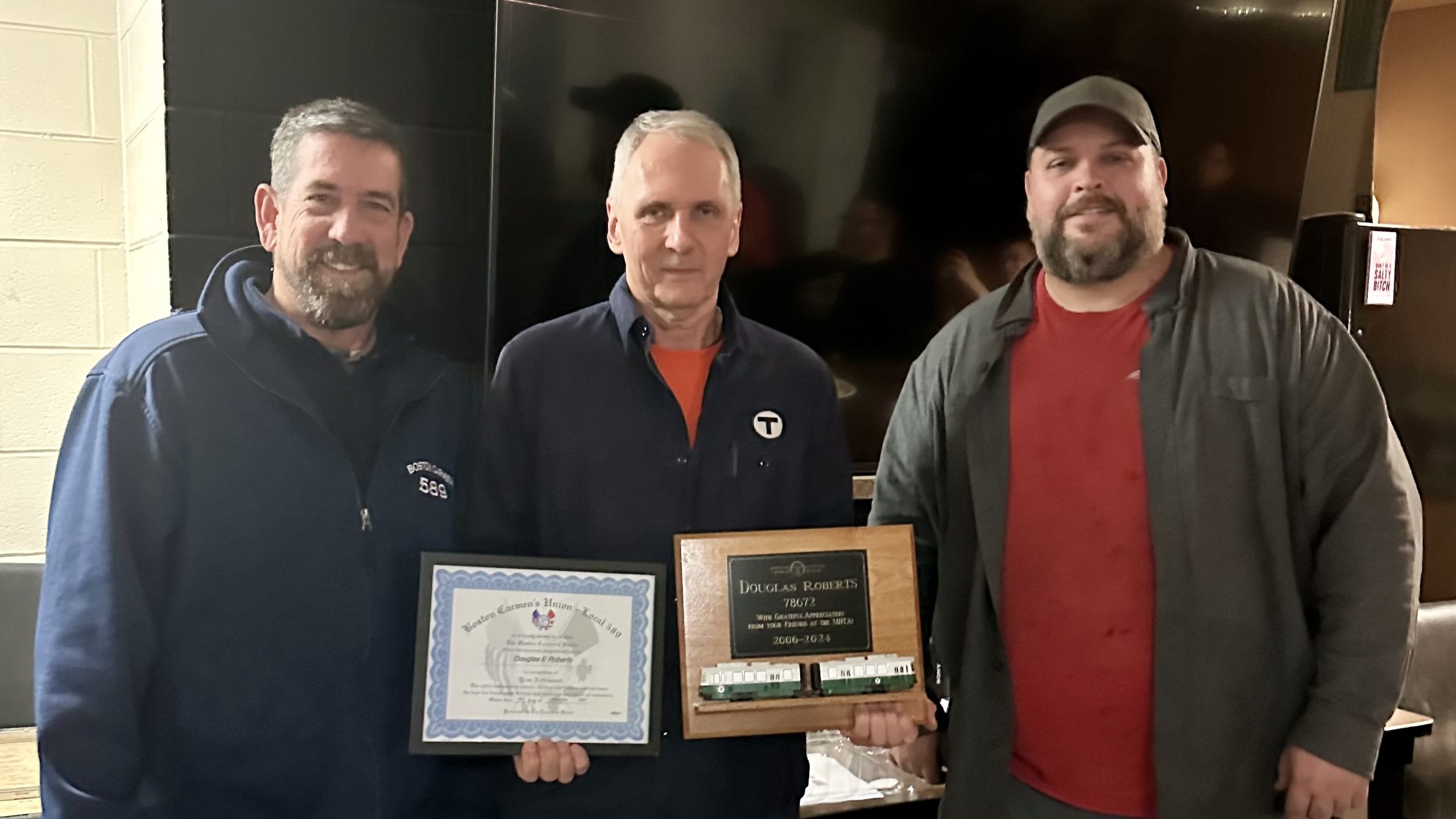 Join Local 589’s Executive Board in congratulating Doug Roberts on his retirement after 18 years of dedicated service as a repairer at Riverside. At his retirement celebration today, Local 589 Equipment Maintenance Delegate John Mersereau presented him with a certificate of appreciation on behalf of the union. The certificate honors Doug’s outstanding contributions to the…