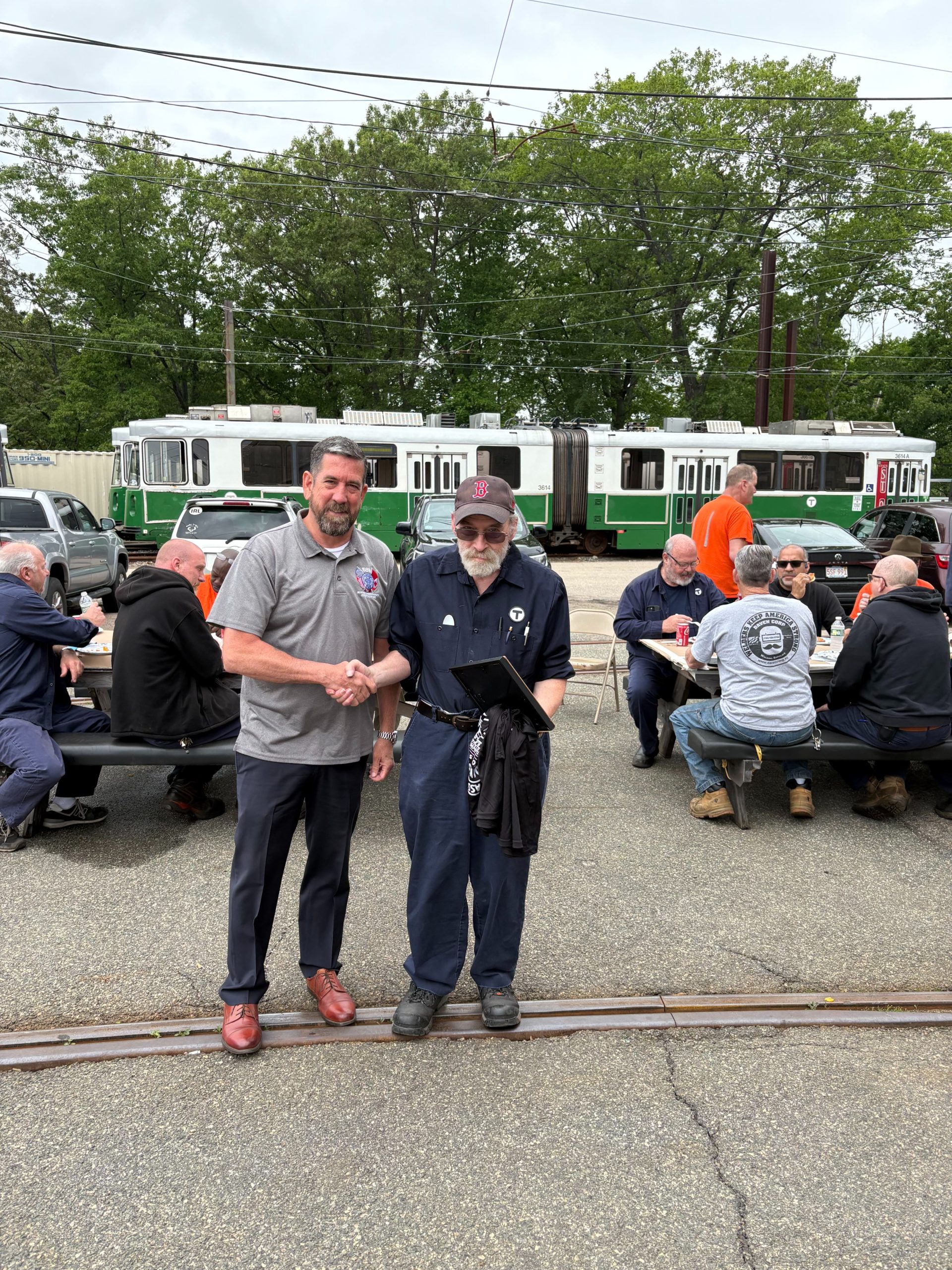 Here are some photos from today’s retirement luncheon celebrating our Local 589 union brother and Rail Equipment Maintenance Technician, Philip Shoemaker, at the Riverside Carhouse. A heartfelt congratulations to Phil, and sincere thanks for his years of dedication and hard work keeping the T moving. Wishing him all the best in a happy and well-earned…
