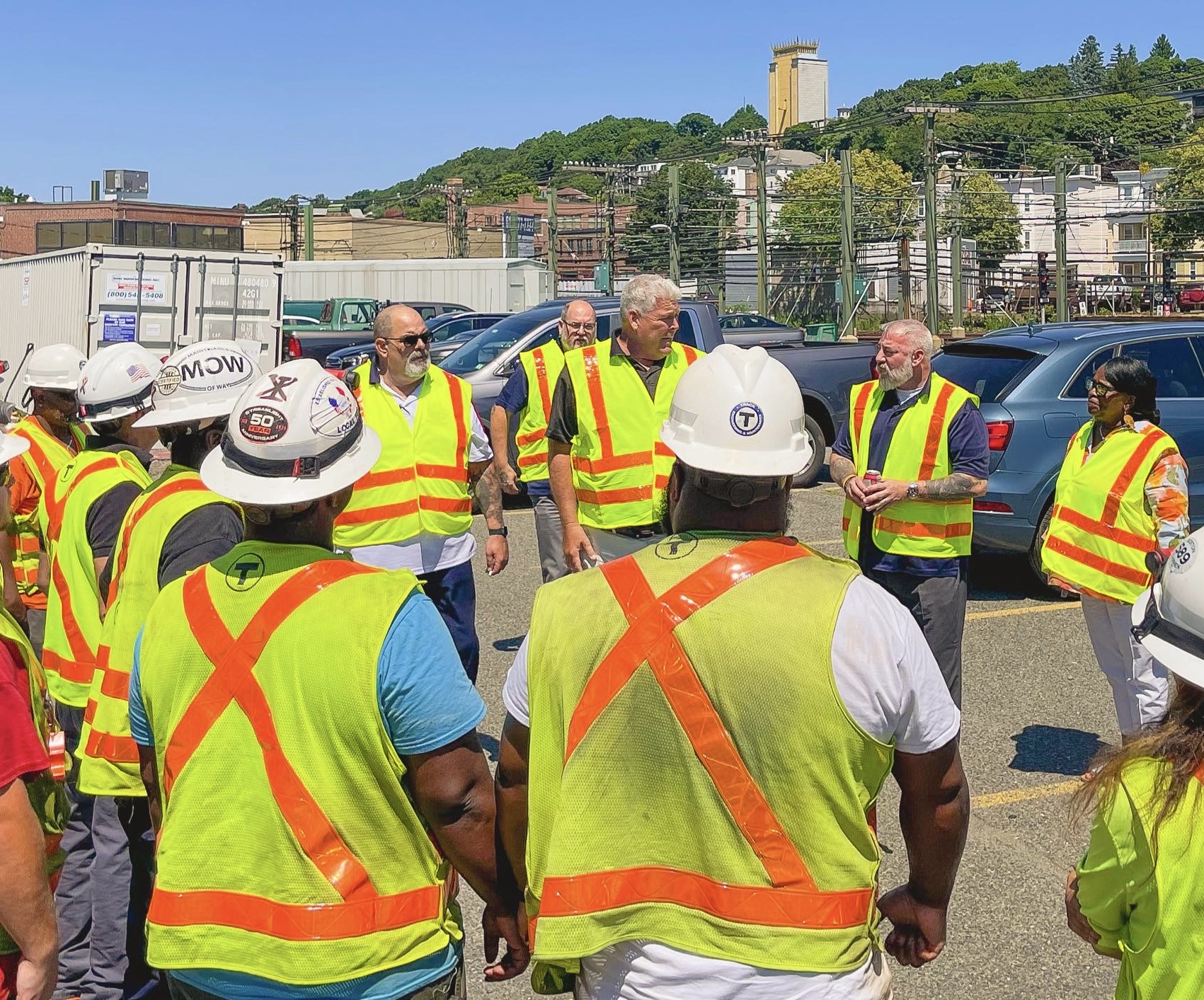 Today, the E-Board visited the operators and repairers on the Blue Line, as well as a track crew working in the Orient Heights Yard. Thank you to everyone who took the time to discuss workplace issues with us. Click here to see some photos from the visit.
