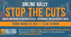 Dear Brothers and Sisters, The good news is that the U.S. Congress and the newly-elected Biden-Harris Administration are providing about a billion dollars in COVID relief aid to the MBTA as part of the historic American Rescue Plan. The bad news? Governor Charlie Baker and the MBTA are ignoring this promising news and saying they…