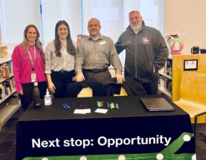 Local 589 President Jim Evers seen here with members of the MBTA’s HR Dept. at a union career fair at Rockland High School. Evers spoke to the high school students about the benefits (pension, benefits, voice on the job) of joining a union. If we want to increase the number of union members we have…