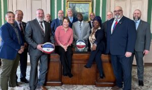 Today, Local 589 President Jim Evers and the Executive Board presented Governor Maura Healey with a signed basketball symbolizing the teamwork that exists between the governor, union and MBTA—and which led to a historic labor agreement. Thank you Gov. Healey, MBTA General Manager Phil Eng, and Secretary of Transportation Monica Tibbits-Nutt for partnering with us…