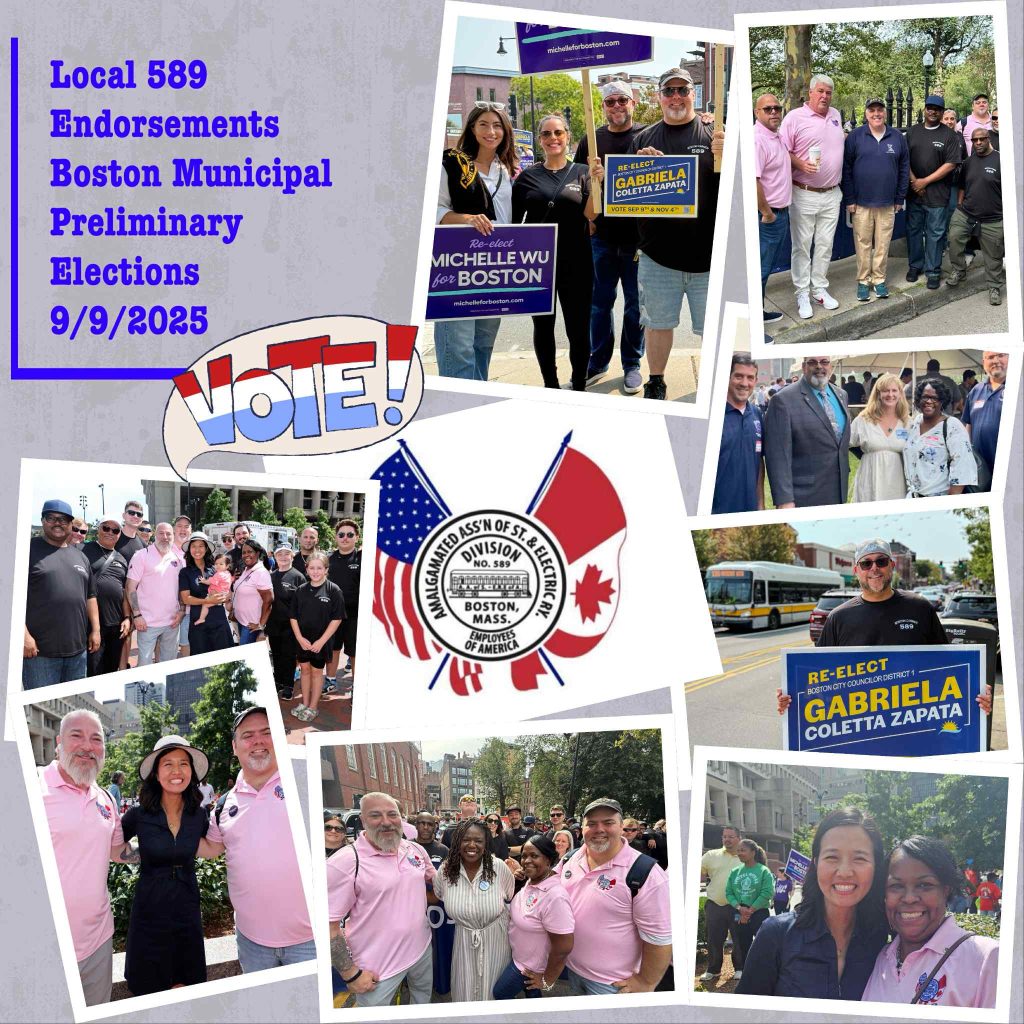 The Executive Board of Boston Carmen’s Union, Local 589 urges all members and retirees who live in Boston to support our endorsed candidates: